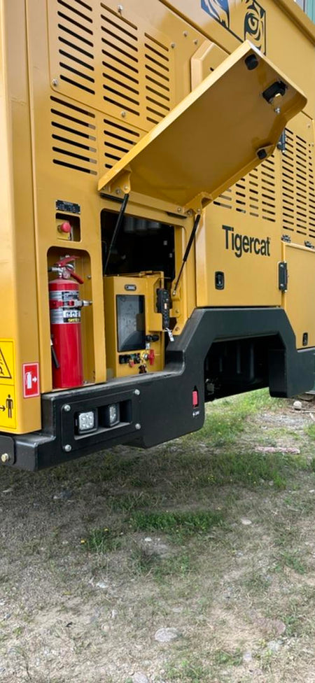 The 6040 is one of the most environmentally friendly wood debris reduction and conversion systems available on the market. The machine inputs woody debris and produces a high quality organic carbon with up to 90% material reduction. It is an ideal solution for converting unwanted logging and agriculture residue into a useful, high grade organic carbon that can be left onsite as a soil additive or marketed for many different commercial uses. The process captures 20 to 30 percent of the available carbon in the feedstock and sequesters it for thousands of years, furthering the goals of greenhouse gas (GHG) reduction. The innovative conversion process operates at high throughput levels and produces very low emissions because the gasses are combusted in the controlled combustion zone. (Tigercat)