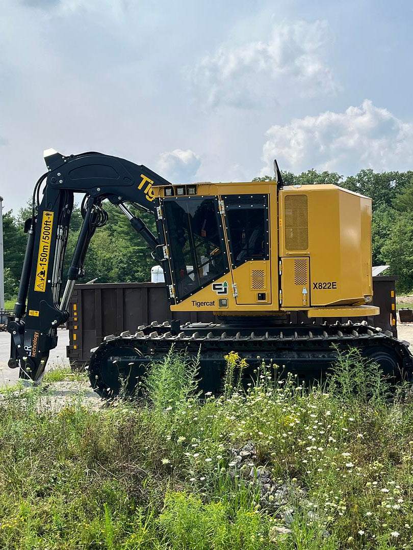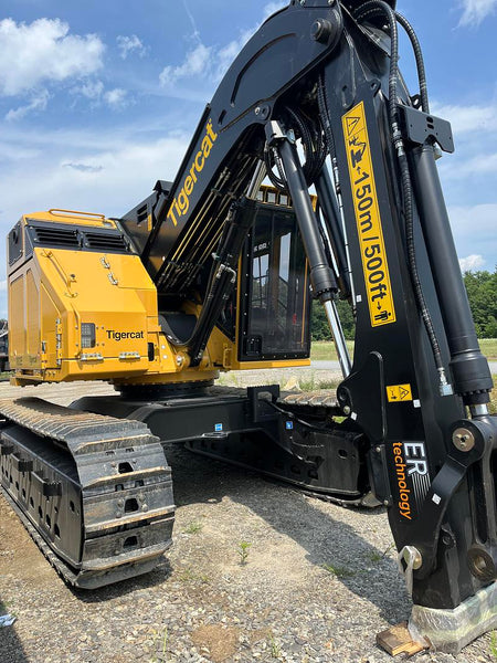 Versatile for thinning and final felling. Powerful lift capacity, tight-tuck boom geometry and compact tail-swing minimize site impact and residual stand damage in selective felling application. (Tigercat)